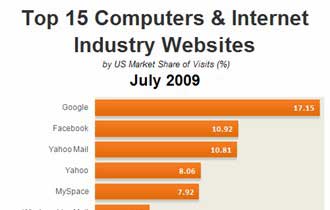 Top 15 Computers & Internet Industry Sites, July 2009Web SitesThe websites of search giant Google, social-media leader Facebook, and Yahoo's email service topped the list of websites in the computers & Internet industry in July, according to Hitwise.